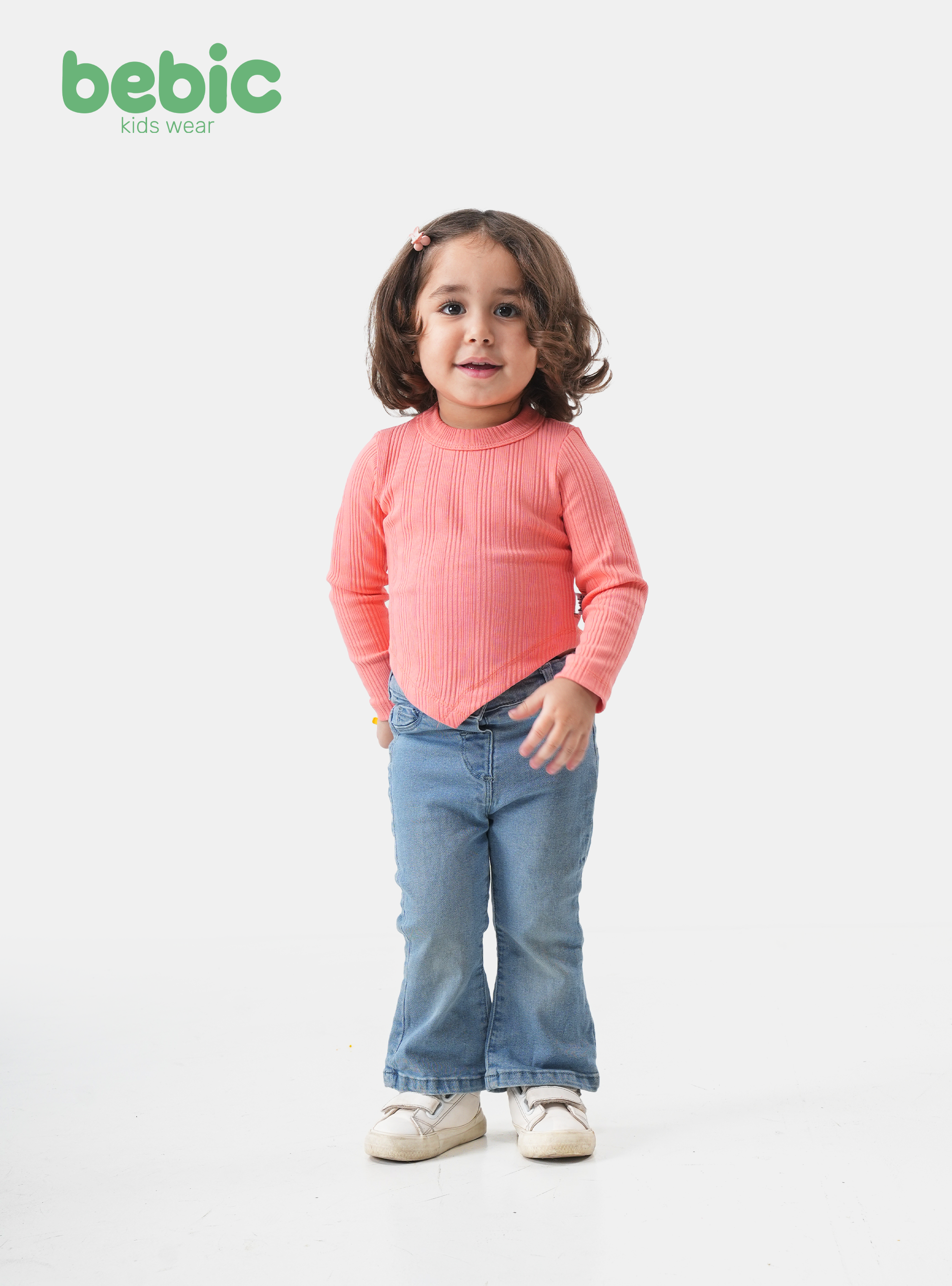 Add a touch of sophistication and modernity to your little girl's look with this stylish blouse from the "Bebic" children's collection, combining exceptional comfort with an innovative design. The warm coral (cashmere) color adds vibrancy and brightness to her outfit, and it's crafted from high-quality ribbed knit fabric that offers perfect flexibility and complete freedom of movement. The design's standout feature is the innovative V-hemline, giving it a modern and unconventional touch, along with long sleeves and a flattering round neckline that ensures both warmth and style. This makes it the perfect choice to pair with jeans or a skirt for a striking everyday look.