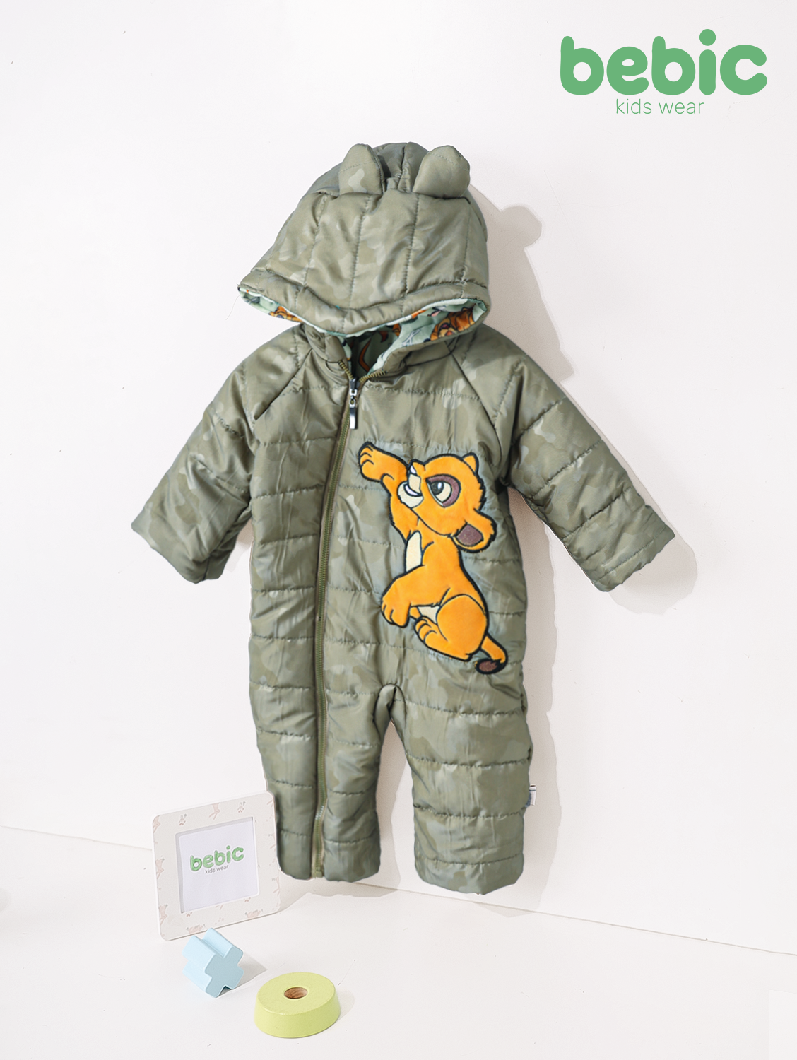 This jumpsuit is perfect for your little one because it's reversible! The first side is lined and designed in a soothing olive green hue with an embroidered "Simba" character, while the second side features playful "The Lion King" character graphics. The jumpsuit is highly practical thanks to the full zipper for easy dressing and removal. It's made of warm, lined fabric to ensure your child's comfort on cold days. This one-piece ensures two different looks and optimal warmth.