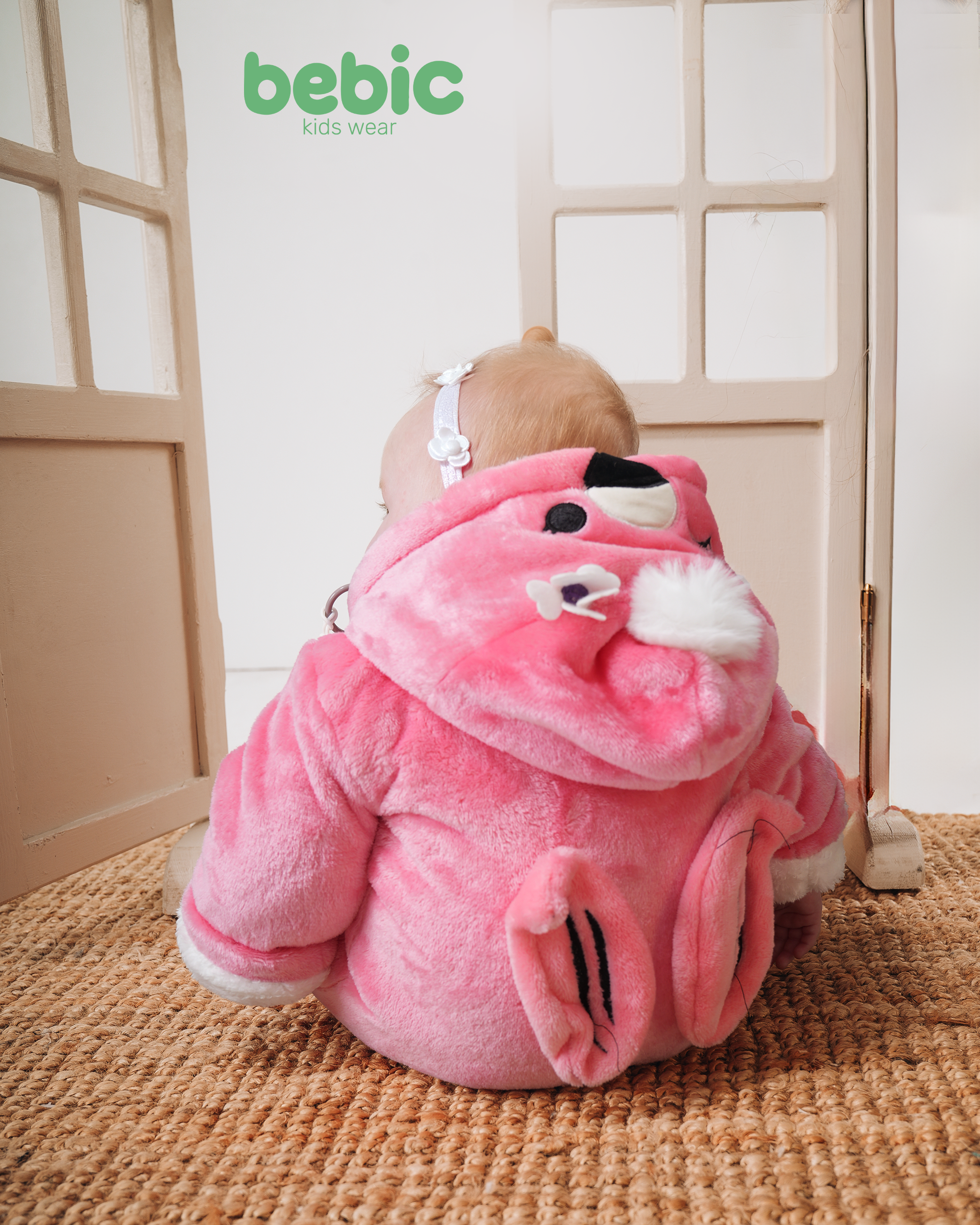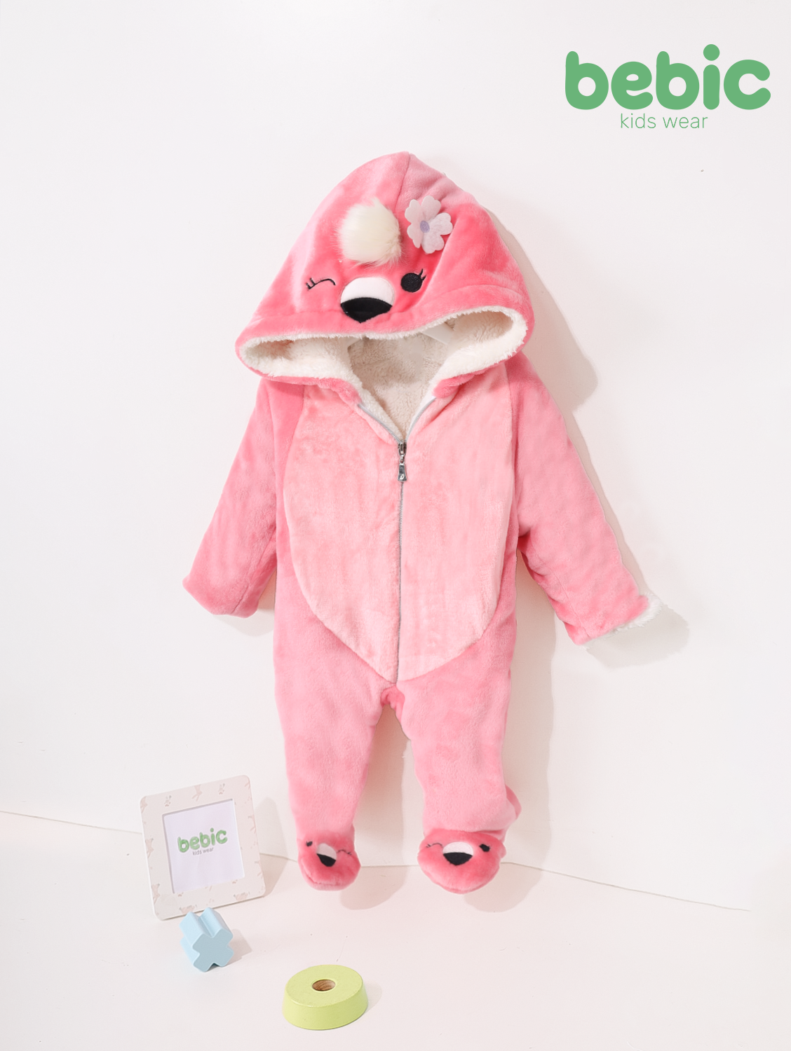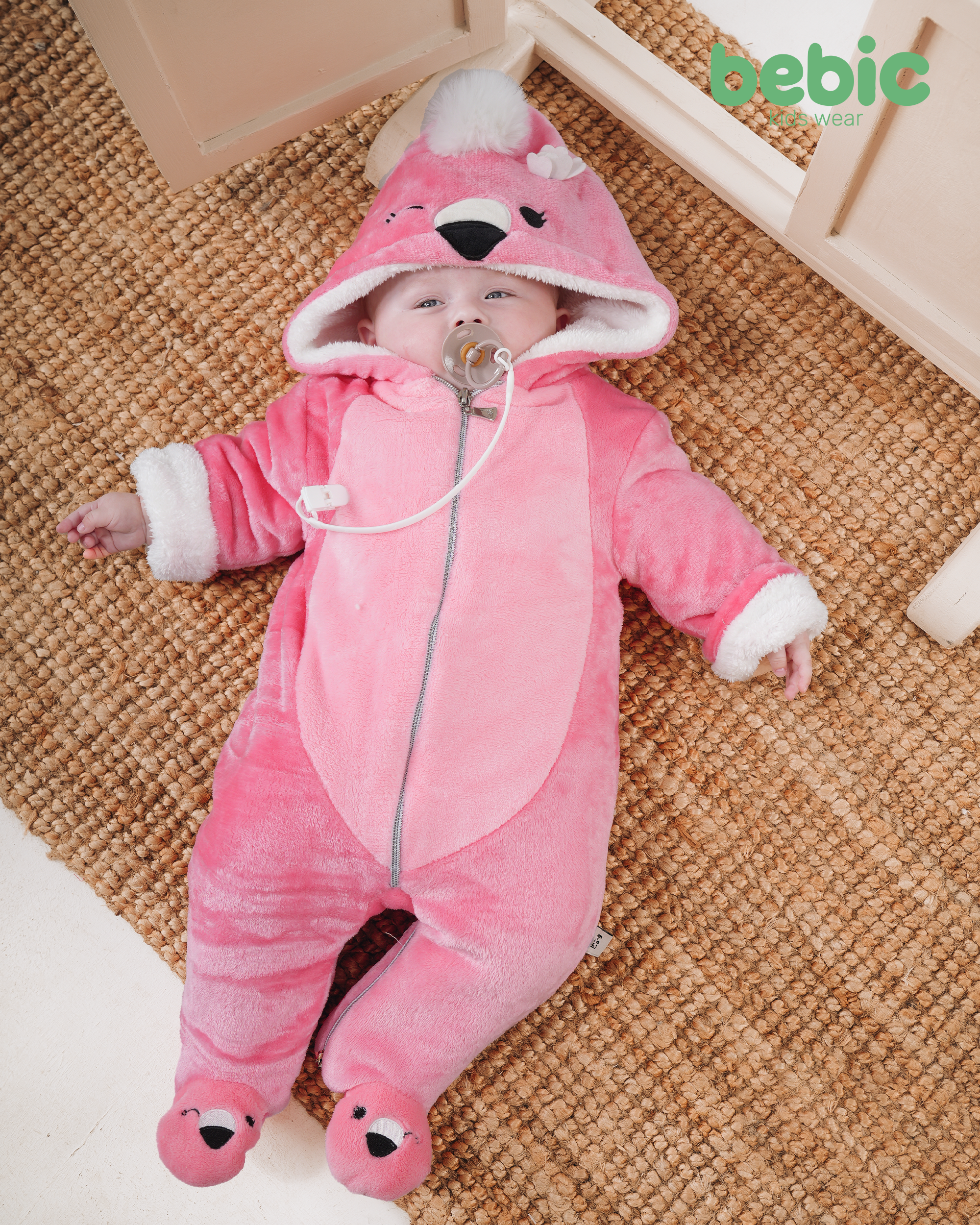 This jumpsuit features a flamingo design in light pink, giving it a cute and adorable look. It's made of soft faux fur and lined to ensure your child's warmth and comfort on cold days. The jumpsuit is highly practical, thanks to the front zipper for easy dressing. It's the perfect combination of warmth, style, and comfort, making it sure to make your child stand out.