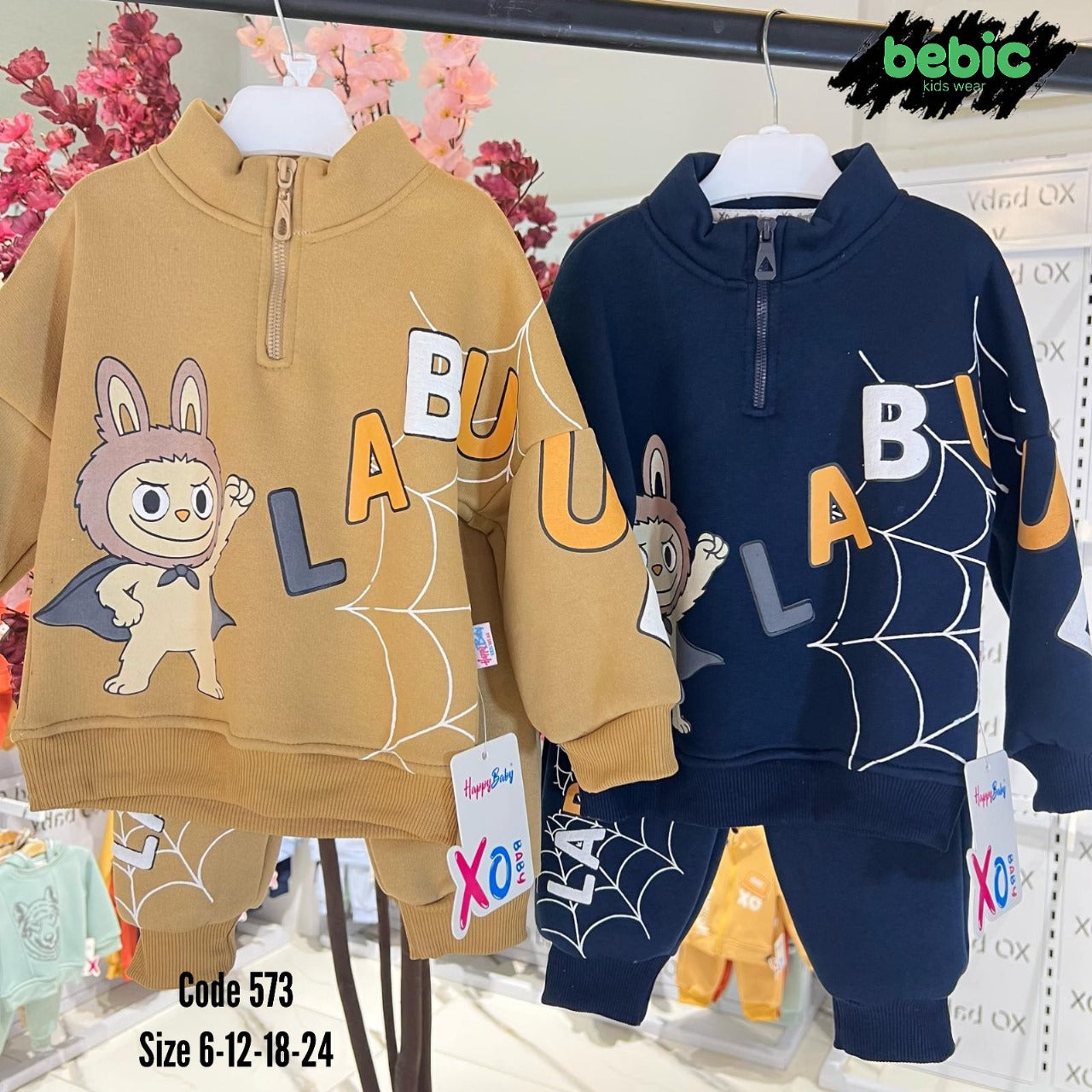 A cute two-piece winter set for babies, featuring the adorable Labobo character printed on the chest with spider web detailing on the sides. The soft and comfortable material keeps your baby warm on cold days, and the front zipper makes it easy to wear. The set comes in two attractive colors: camel and navy, giving your baby a fun and vibrant look.