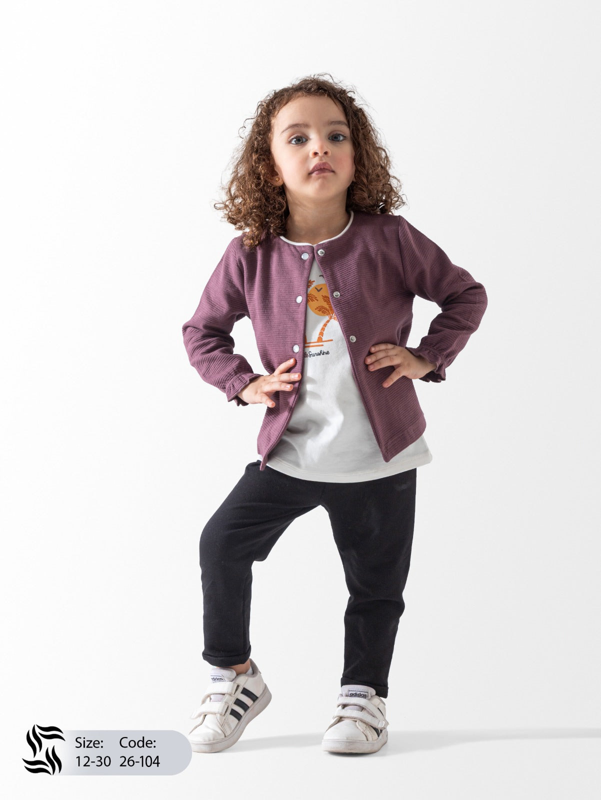 طقم البنات هذا المكون من ثلاث قطع هو الخيار الأمثل، فهو يجمع بين الأناقة الكلاسيكية والراحة اليومية. يتميز الطقم بتصميم متناسق يتألف من ثلاث قطع أساسية. القطعة الرئيسية هي كارديجان بلون بنفسجي داكن (باذنجاني) مصنوع من القطن المنسوج، مزين بأزرار أمامية أنيقة وأساور مكشكشة تضفي لمسة من الأناقة والرقي. يكتمل المظهر بتيشيرت قطني أبيض مزين بطبعة أشجار نخيل رقيقة، وبنطال ضيق أسود يمنح طفلتك حرية حركة كاملة أثناء اللعب أو الخروج. صُنع هذا الطقم من مواد عالية الجودة تضمن النعومة والمتانة، فهو عملي وأنيق في آن واحد، ومناسب لمختلف الأنشطة والمناسبات غير الرسمية.