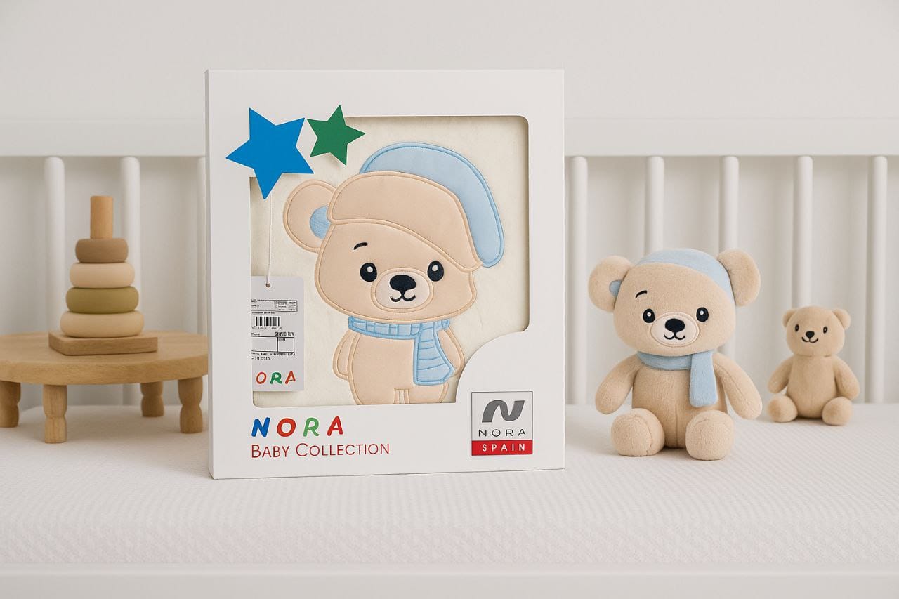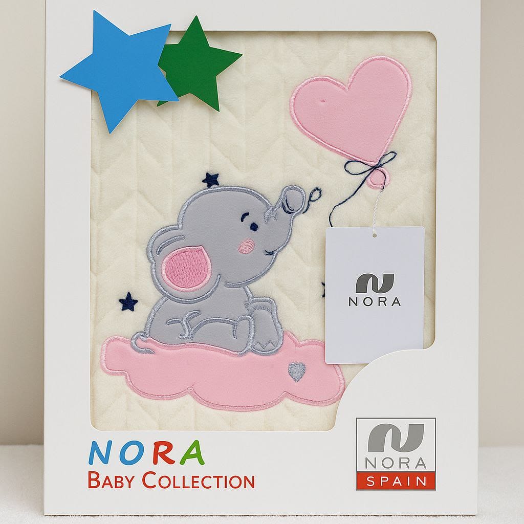 This luxurious baby blanket set combines gentle warmth with a stylish look. Made from ultra-soft quilted cotton, it's perfect for delicate baby skin. Featuring charming cartoon designs with intricate embroidered details, the set includes a "Pink Elephant" sitting on a fluffy cloud holding a heart-shaped balloon, and a "Blue Bear" wearing a winter hat and scarf, complete with a matching plush teddy to be your baby's first friend. The blanket comes in a calming off-white (cream) color that complements even the most elegant nursery décor and is presented in a luxurious gift box bearing the brand's logo, making it an ideal and thoughtful gift for newborns.