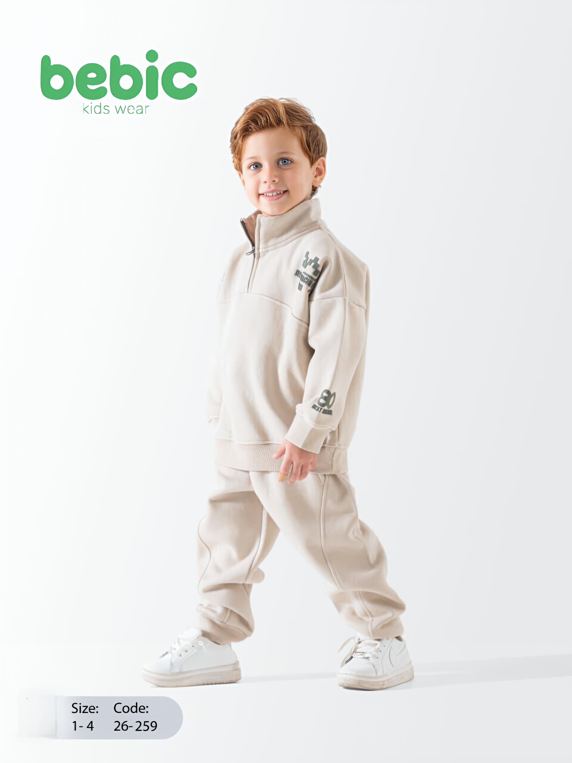 These two sports sets are identical in design and are suitable for boys' workouts. They consist of a high-neck, short-zip (quarter-zip) sweatshirt and square-cuff jogger pants. Both sets feature a relaxed, oversized fit and are adorned with white graphic prints and logos on the chest and sleeves, including phrases like "BEST RACER TEAM".