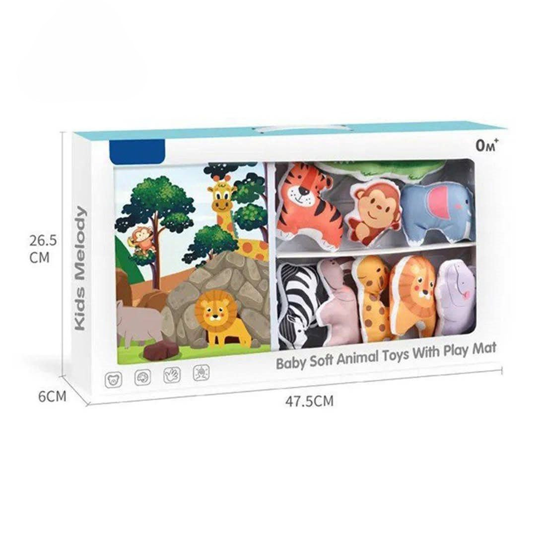 Introduce your little one to the magical world of playtime with our Baby Soft Animals Toys With Play Mat. Our collection of soft and cuddly animal toys, paired with a durable and interactive play mat, will stimulate your baby's senses and encourage development through play. Perfect for curious minds and growing bodies.