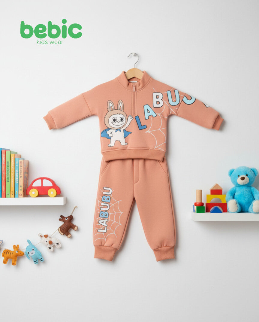 A cute two-piece winter set for babies, featuring the adorable Labobo character printed on the chest with spider web detailing on the sides. The soft and comfortable material keeps your baby warm on cold days, and the front zipper makes it easy to wear. The set comes in two attractive colors: camel and navy, giving your baby a fun and vibrant look.