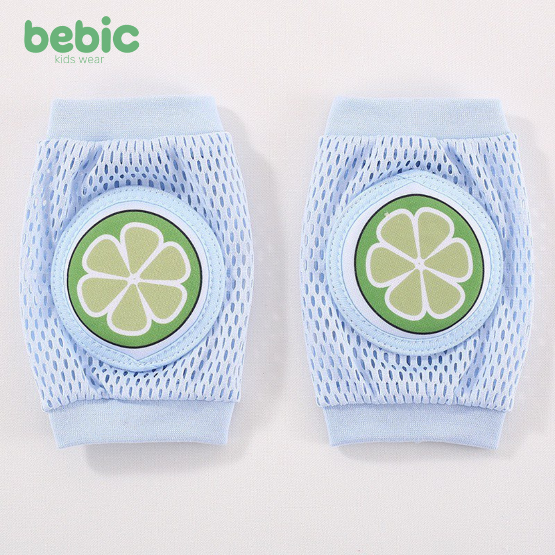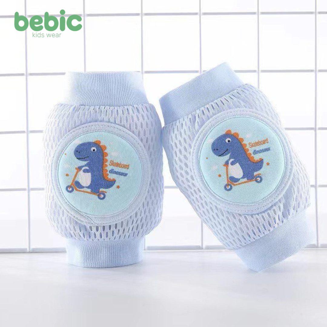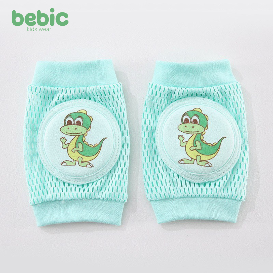 Bebek baby knee pads are designed to protect your baby's knees as they crawl and discover the world.It comes in a soothing aqua green color and features a thick, padded center lining for maximum protection against bruises and abrasions. The lining is adorned with a cute and playful dinosaur graphic.The surrounding area is made of mesh fabric, which allows for good ventilation to prevent sweating. It features elastic edges to ensure stability and comfort on your child's knees. Ideal for homes and hardwood or ceramic floors.
