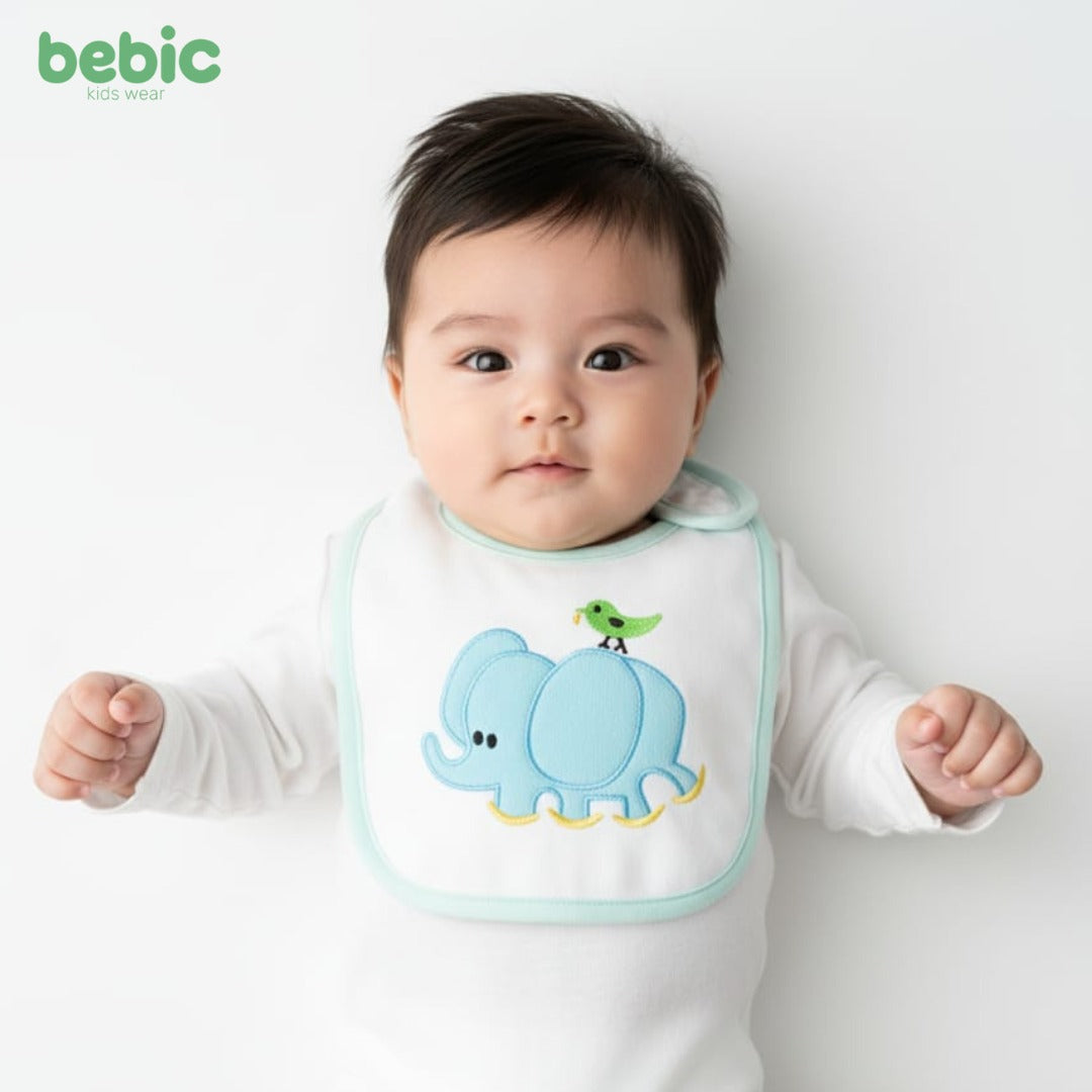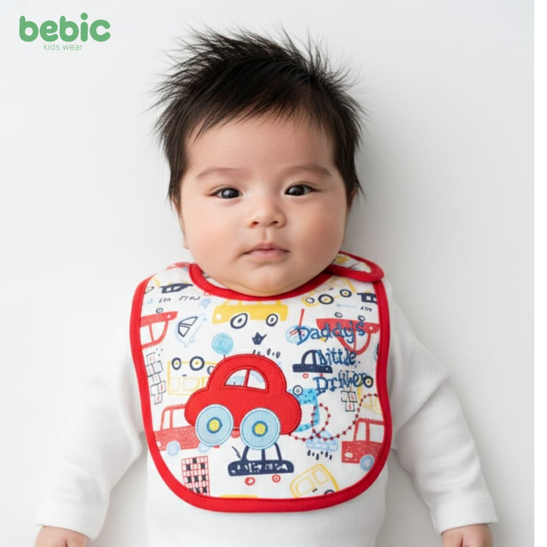This baby swaddle is made from a soft, beefy cotton material. It features a waxed inner lining, making it durable and resistant to protect baby's clothing while resting. It's a must-have for newborns and is designed to withstand repeated washing.