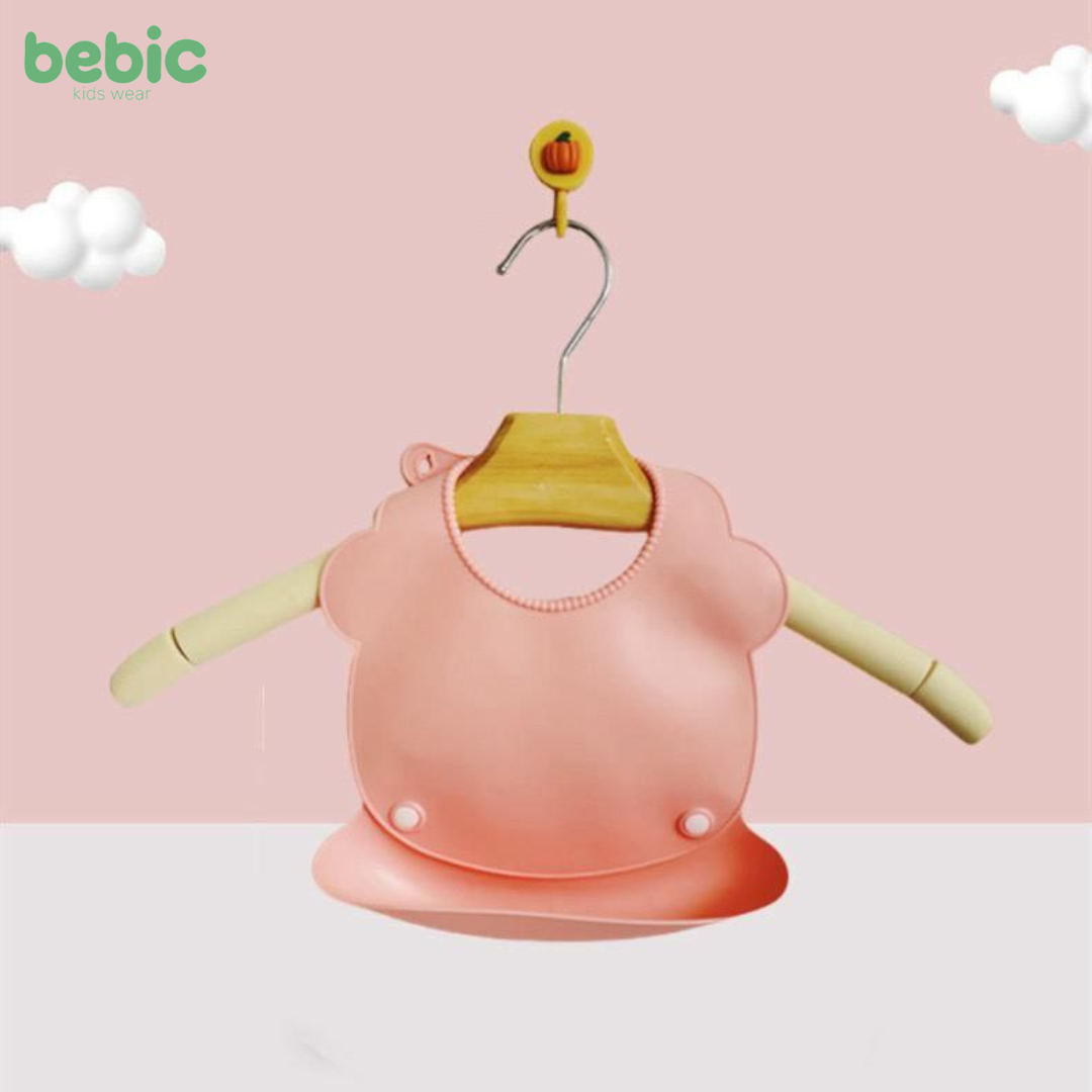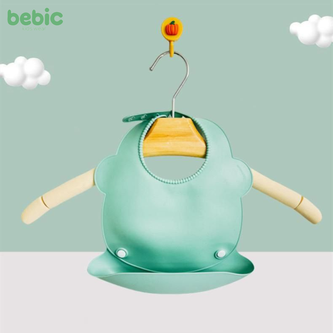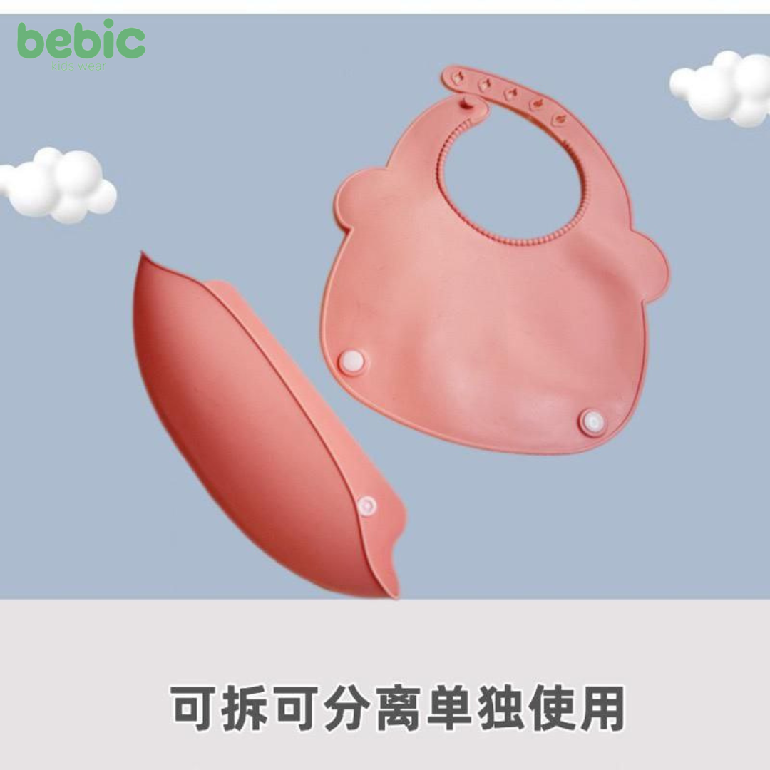 This baby bib is designed to protect your baby's clothing from food debris. It features a convenient design and a deep bottom pocket that collects spills. This pocket can be removed and reattached with buttons, making it easy to clean and store. The bib features an adjustable neck strap that ensures a snug and comfortable fit for your baby. It is very easy to wash and suitable for repeated use.