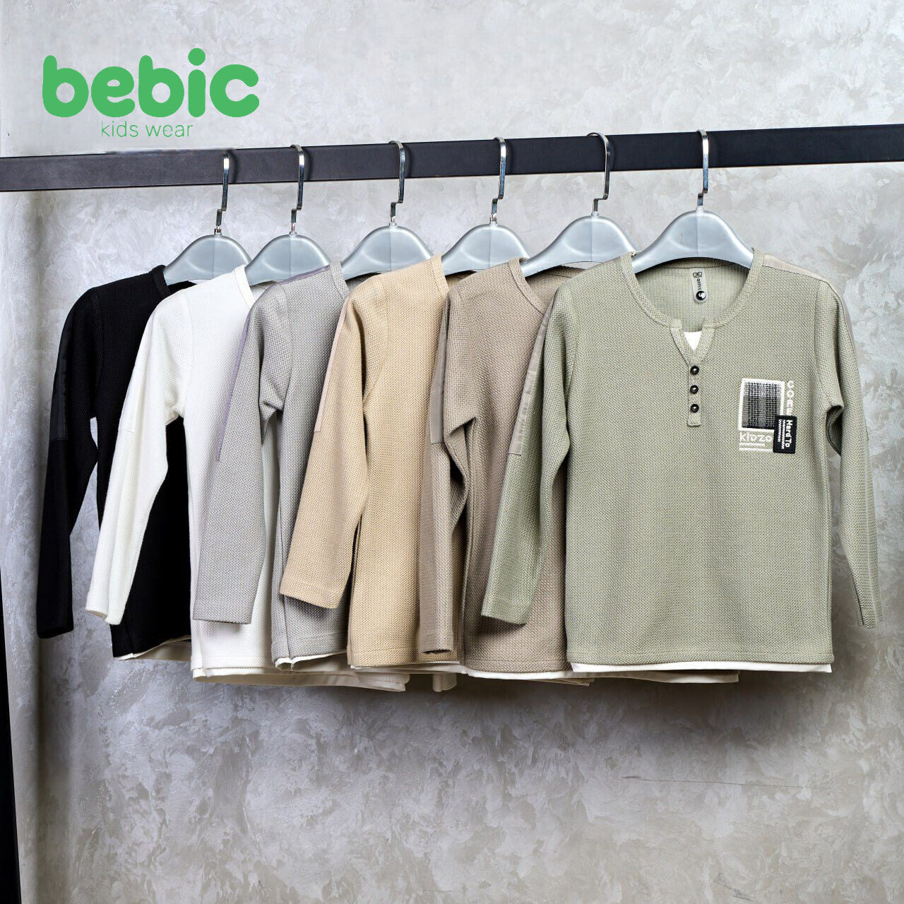 Shine with the new "bebic" collection, redefining everyday style for children. These sweaters combine modern design with the ultimate comfort your child needs all day long. The collection features a luxurious knit fabric with a textured finish, giving the pieces durability and a sophisticated look. A stylish button-front neckline adds a touch of classic Henley style. Available in a variety of colors, including olive green, gray, and beige, to suit any outfit. A trendy graphic patch adorns the chest, giving the design a youthful and distinctive feel. This makes it the perfect essential for any child seeking both style and comfort.